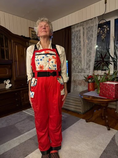 Olen nüüd mitu nädalat saanud tuksesid katsetada ja no nii mugavad! Sain saunas põranda maha, esikut lammutatud ja ka aias ning kasvuhoones korrastada. Põranda panekul ja aias toimetades tulevad põlvepadjakesed väga kasuks. Lisaks meeldib naiselik lilleline välimus ning parajalt palju erisuuruses taskuid. Suur aitäh sulle!